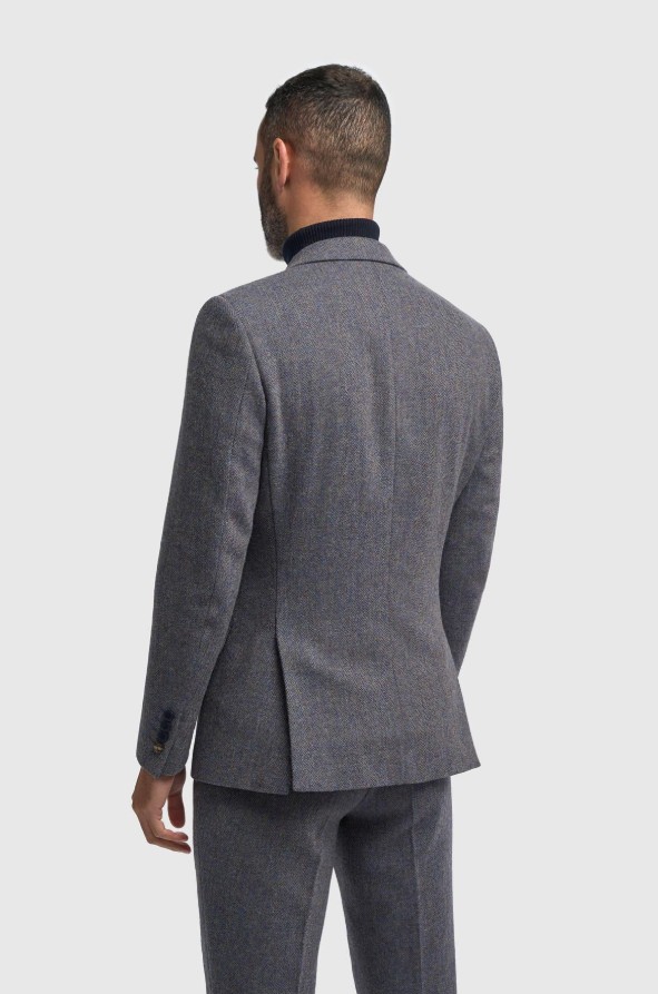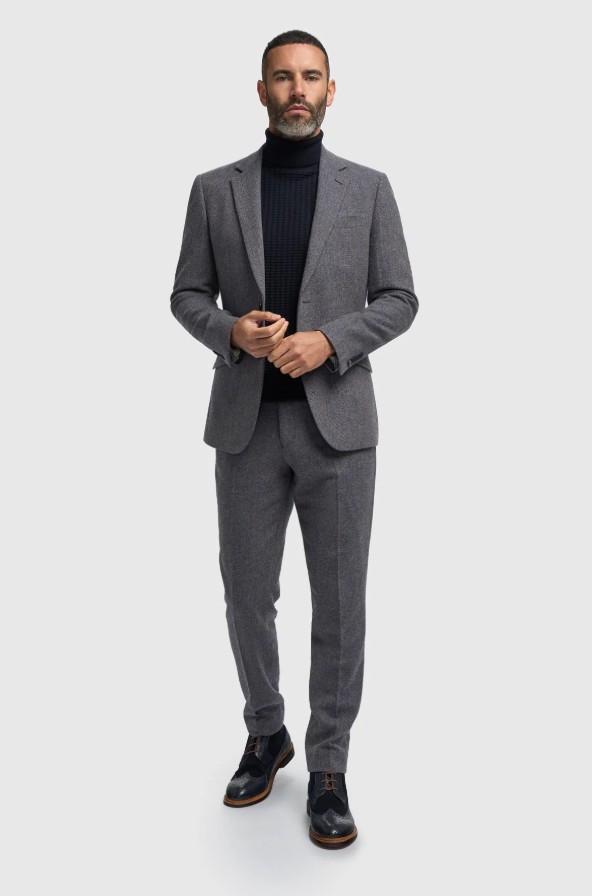 Elegante abito classico a tre pezzi in raffinato grigio, composto da blazer sartoriale, gilet coordinato e pantaloni dallo stile impeccabile. E' la scelta perfetta per cerimonie, eventi formali o ambienti professionali.
