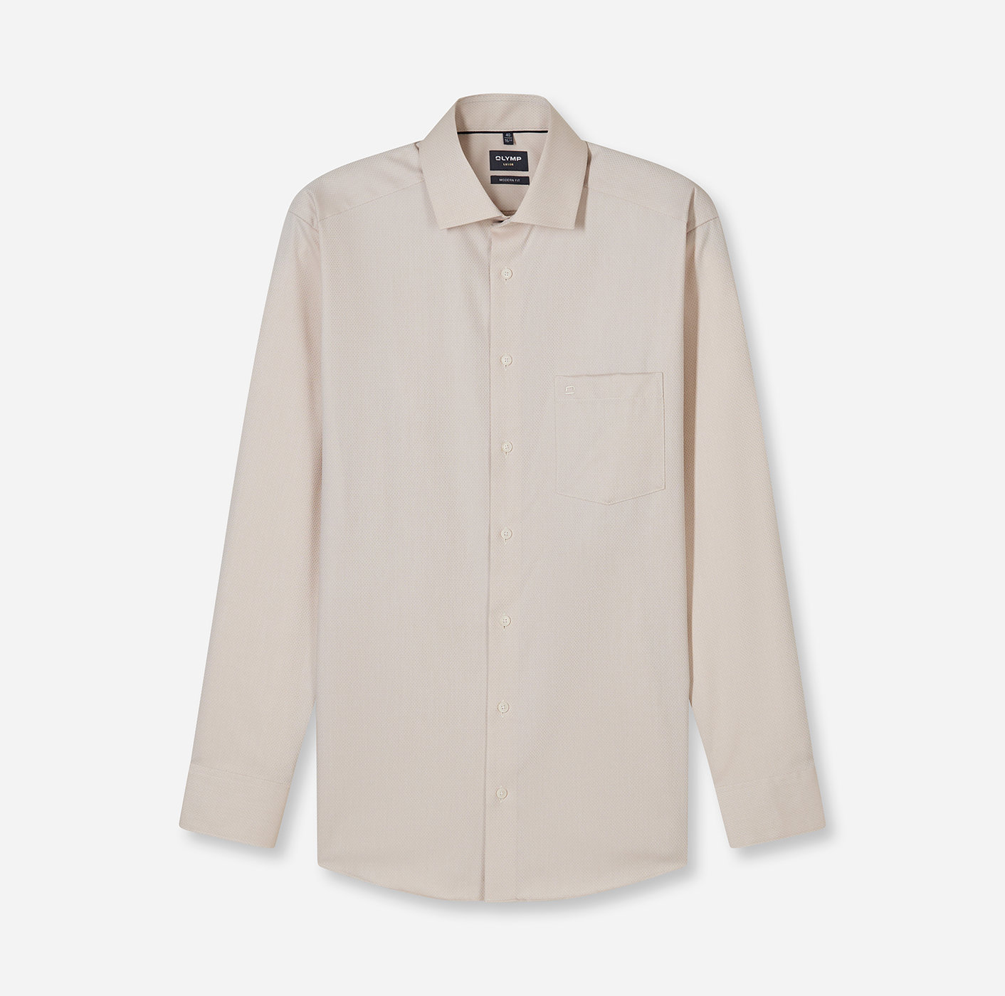 Realizzata in puro cotone operato, questa camicia OLYMP Luxor nel raffinato colore naturale unisce eleganza e praticità. La vestibilità Modern Fit garantisce una linea contemporanea e confortevole, perfetta per l’uso quotidiano come per contesti professionali e cerimonie. Il tessuto è traspirante, piacevole sulla pelle e facile da stirare, per un look sempre impeccabile con il minimo sforzo.
