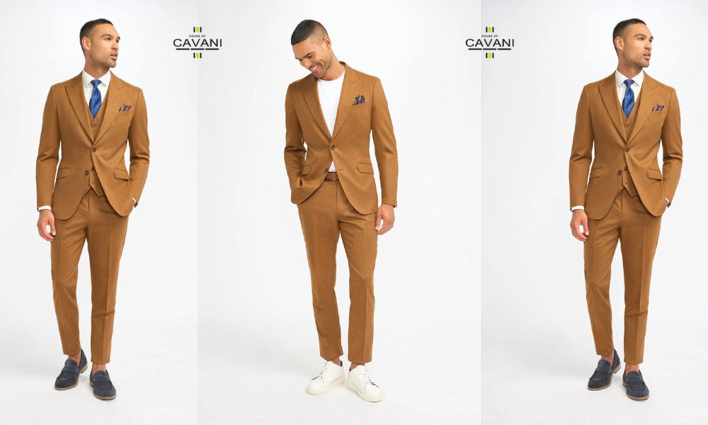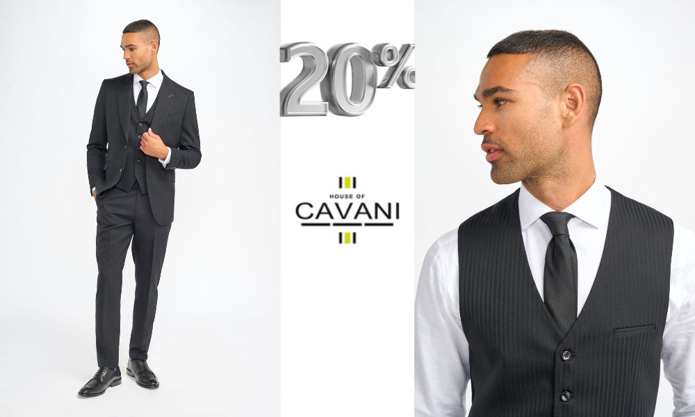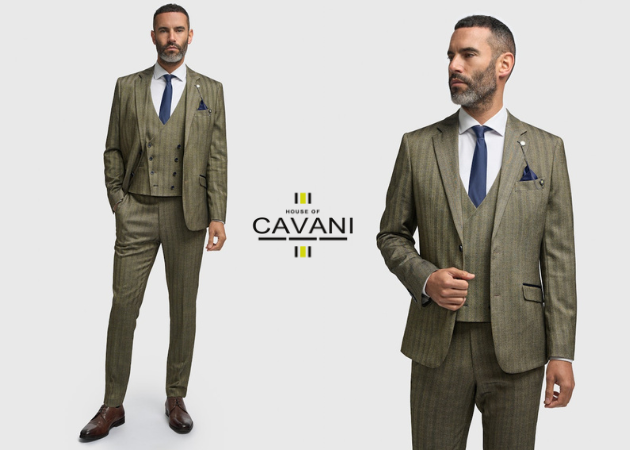 Discover timeless elegance with the Cavani men's suit. This refined set includes a single-breasted jacket, matching vest, and trousers, all made from high-quality fabric to provide a flawless fit and a sophisticated look.