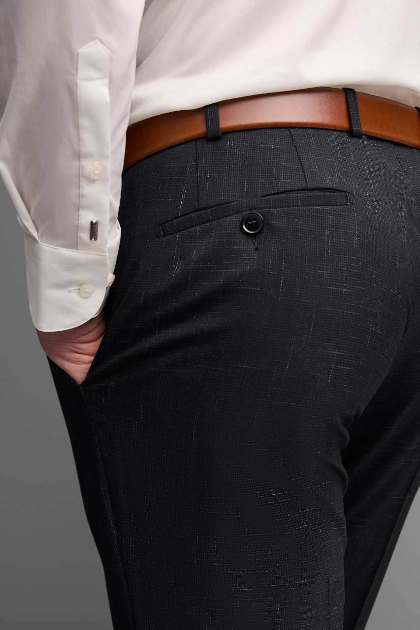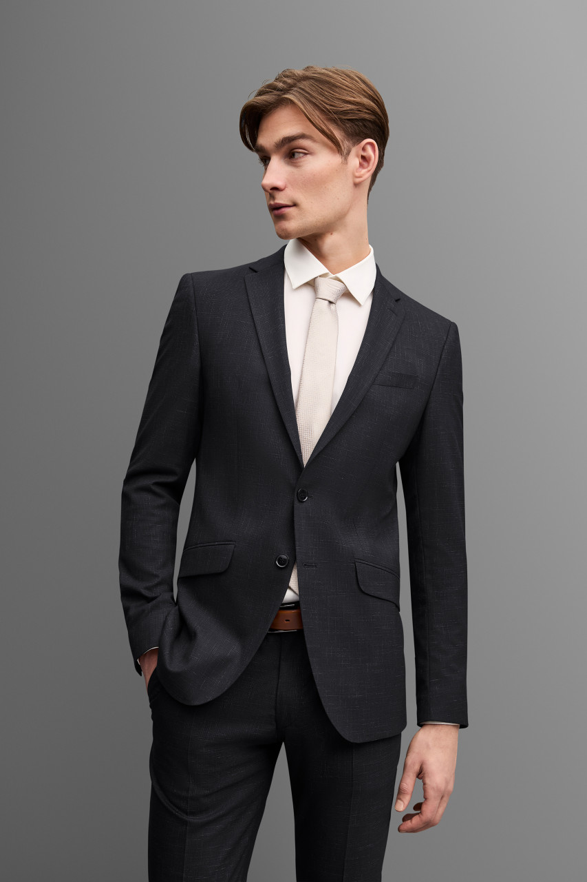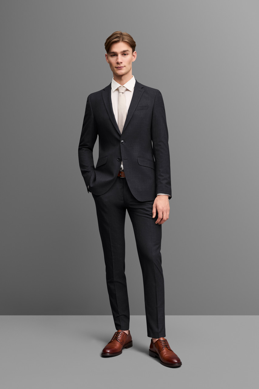 The outfit from the DIGEL Move collection combines modern elegance with maximum comfort and is the perfect choice for the fashion-conscious man. The slim cut enhances the silhouette, while the fine structure of the high-quality fabric gives a refined look. Classic flap pockets, a narrow notch lapel, and a discreet two-button closure emphasize the timeless character of the suit. Thanks to the stretch fabric, the jacket ensures freedom of movement and remains comfortable all day. A must-have for every modern men's wardrobe.