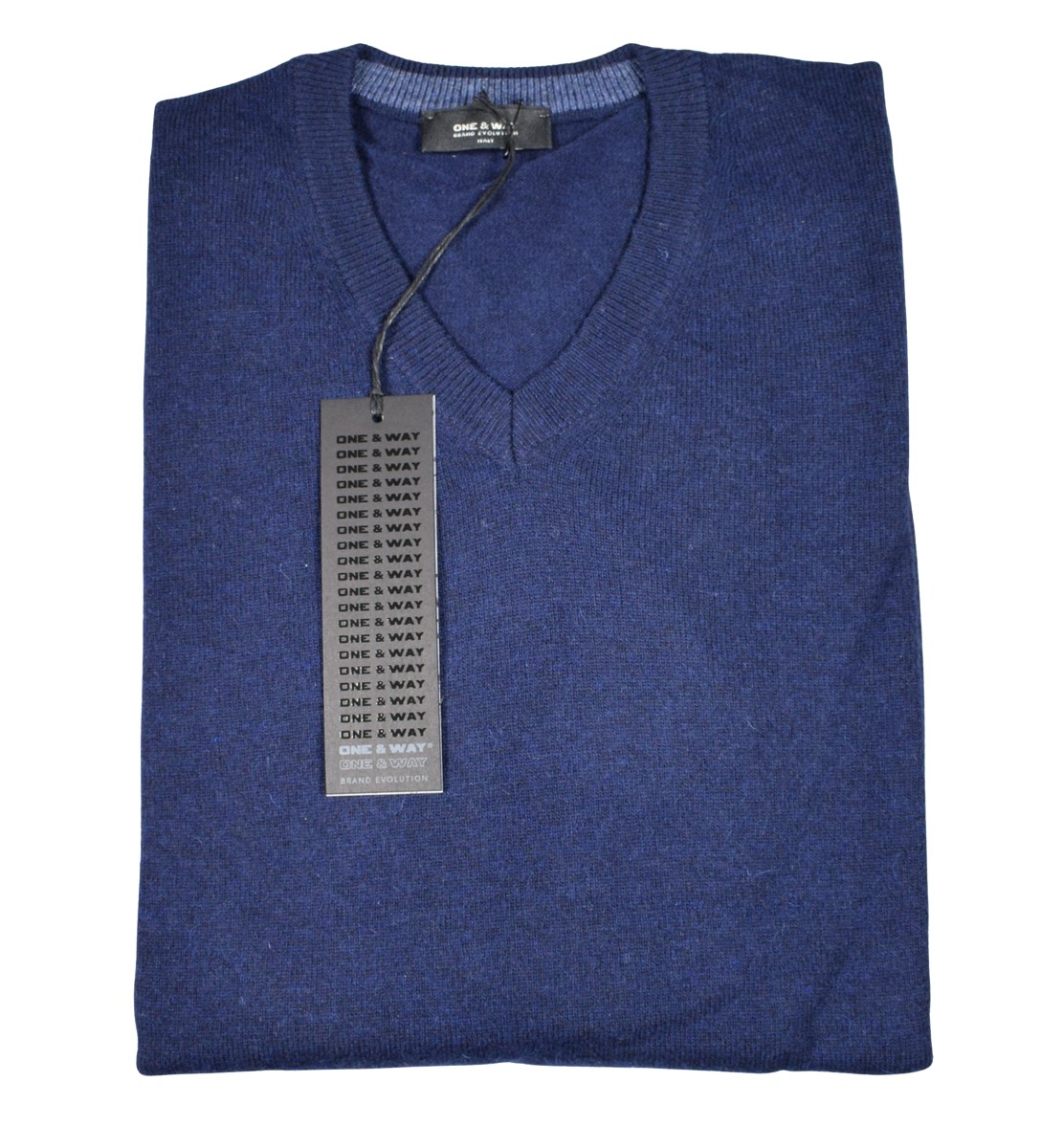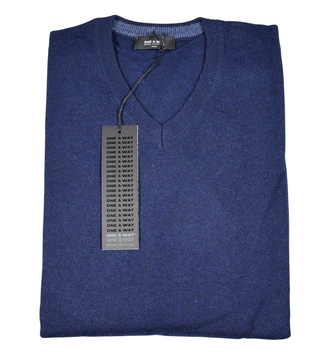 Blue V-neck pullover in lambswool by Pyke Studio