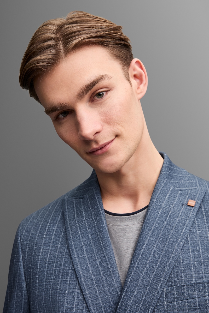The Digel slim fit suit in blue pinstripe is a masterpiece of elegance and refinement. Made from jersey, this double-breasted model features a slim fit that emphasizes the silhouette, making it perfect for formal occasions and business meetings. Its unstructured design ensures optimal comfort, allowing the body to move freely without sacrificing style. The pinstriped details add a touch of originality, making it a versatile piece suitable for various combinations. Worn with a white shirt and a dark tie, this suit represents the ideal choice for those who wish to stand out with class and sophistication. With its timeless design, the Digel suit is destined to become a must-have in your wardrobe.