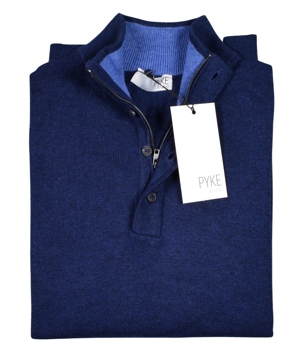 • Blue sweatshirt with buttons and zip mixed cashmere pyke studio