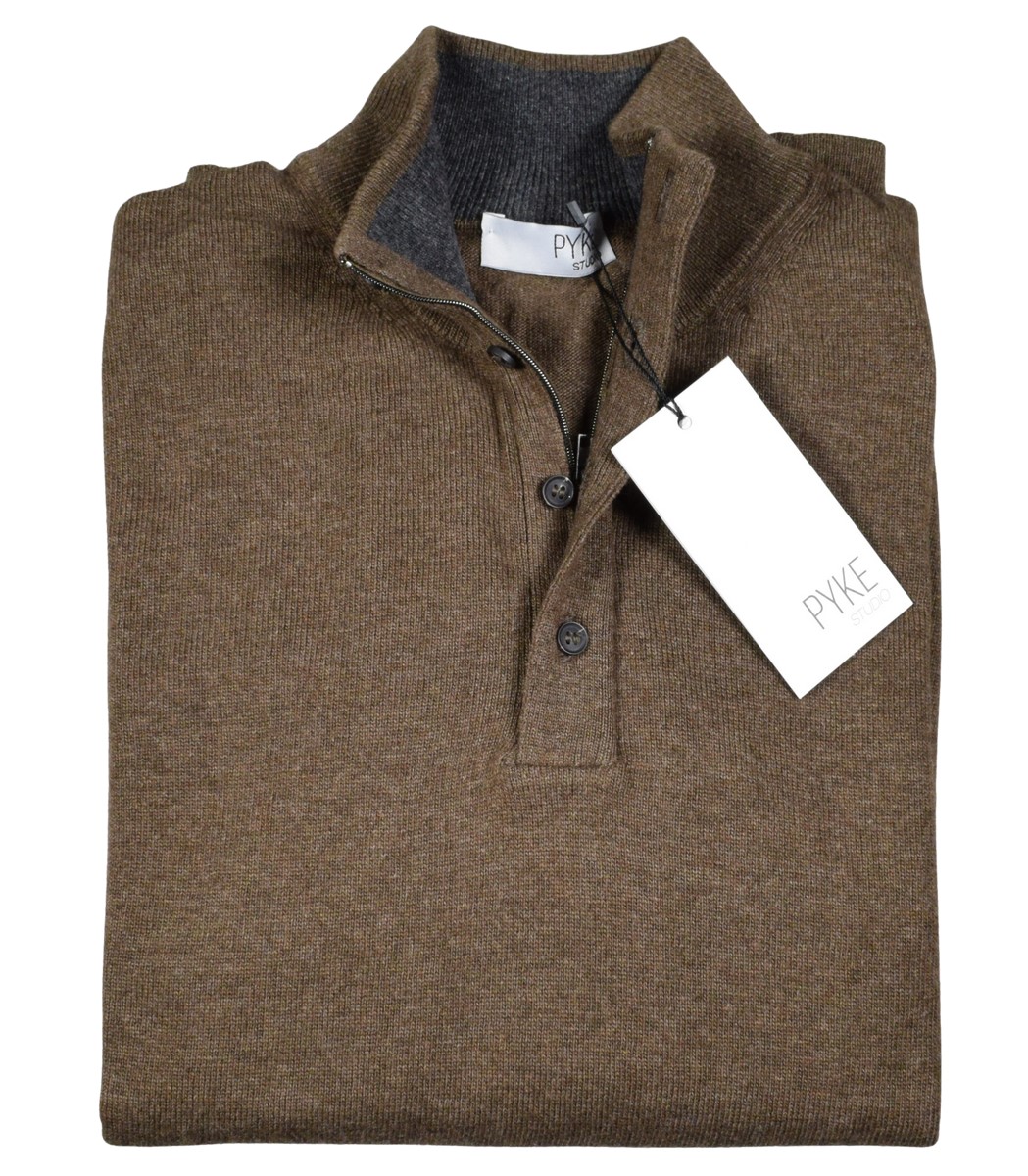 • Brown sweater with buttons and zip mixed cashmere pyke studio