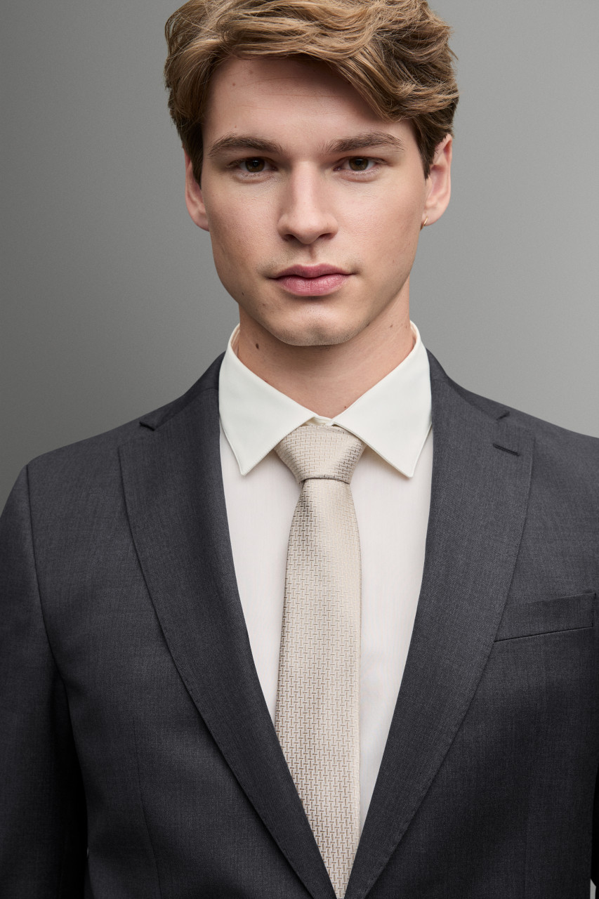 Beige digel pinstripe suit in marzotto wool extra slim fit