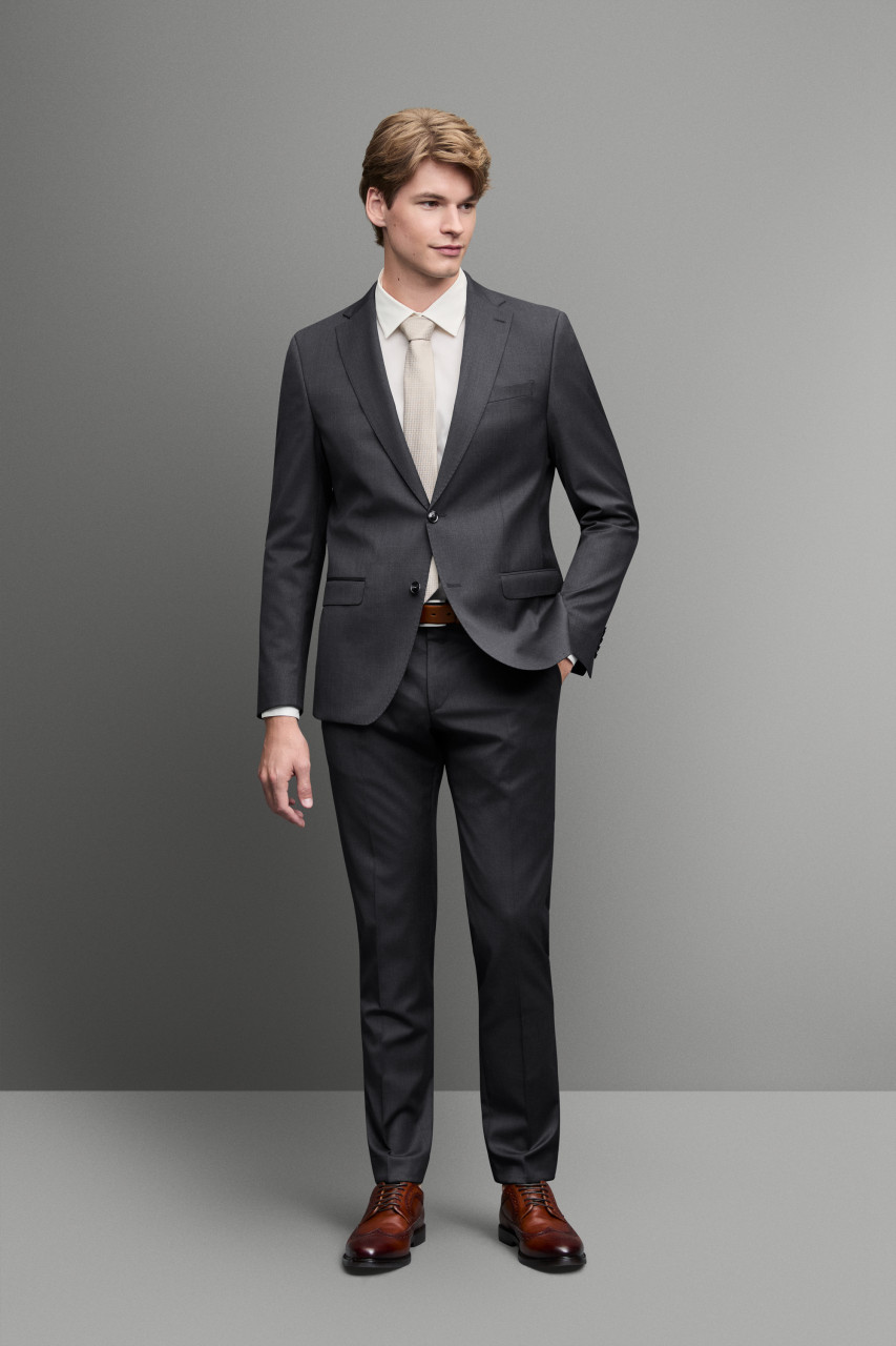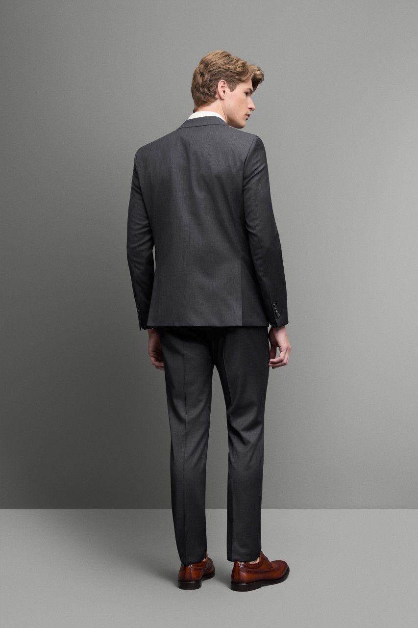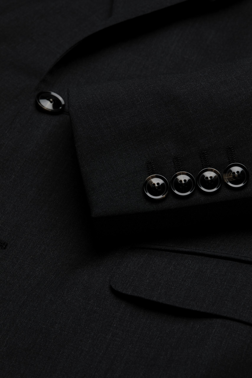 Single-breasted jacket with two buttons, side vents, fully lined, slim fit with three inner pockets. AMF topstitching on the chest.