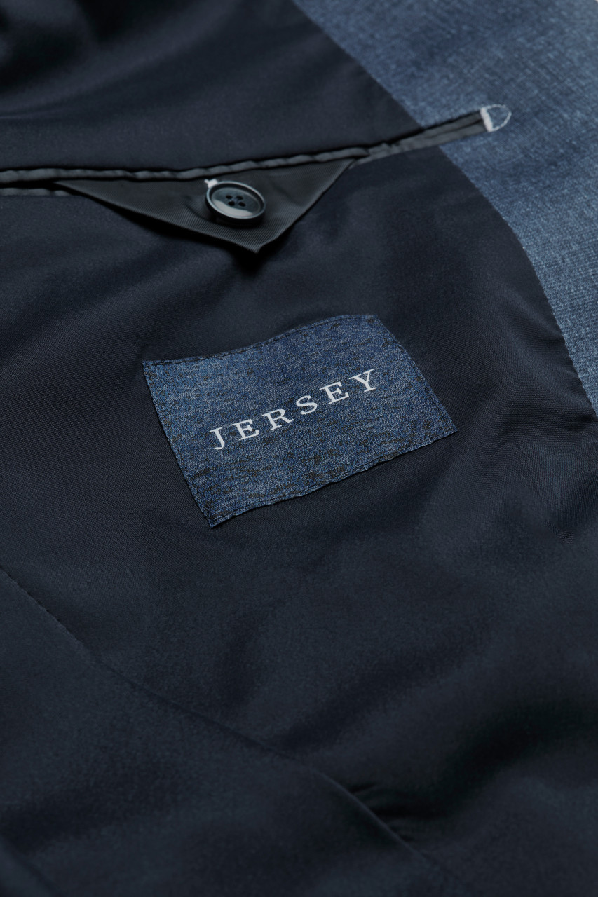 • Medium blue suit in modern fit jersey