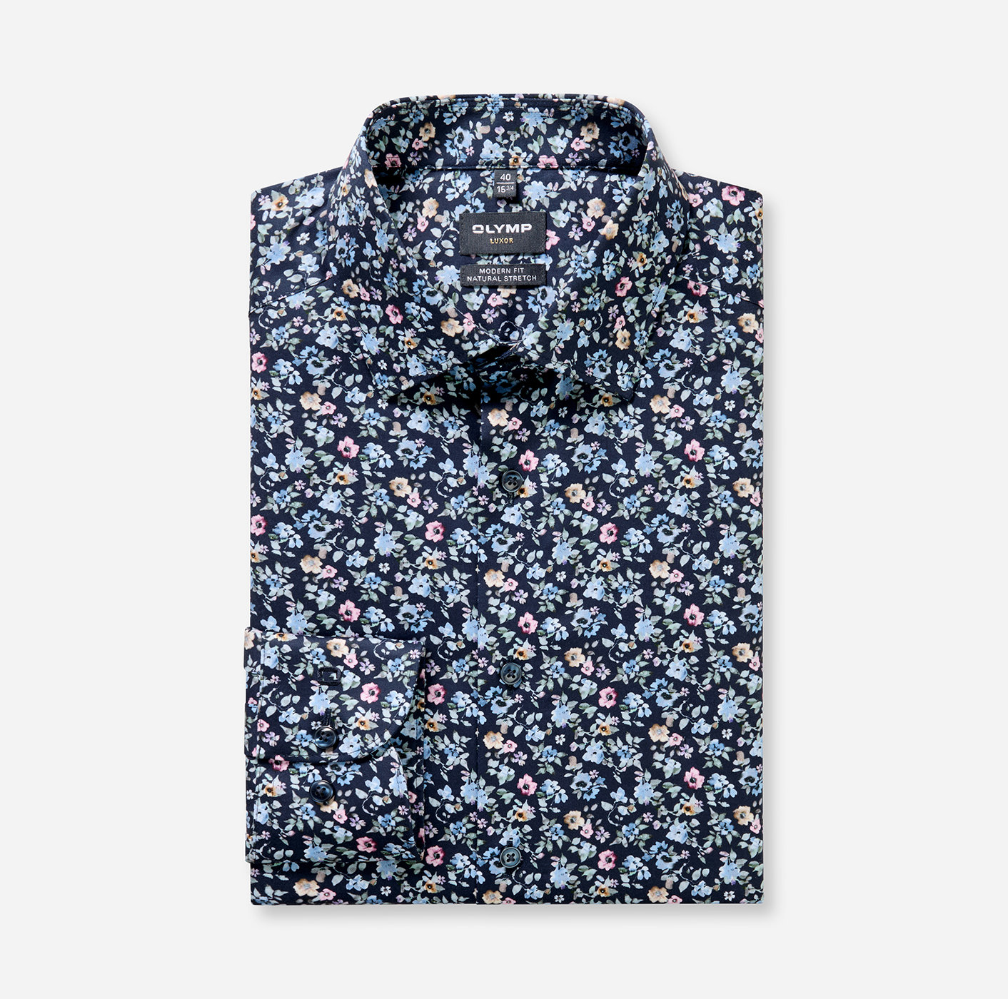 Bold style and natural comfort: this OLYMP Luxor Modern Fit shirt in OEKO-TEX® STANDARD 100 certified twill cotton (95.0.3008 HTTI) combines a flawless fit with a vibrant floral print.
