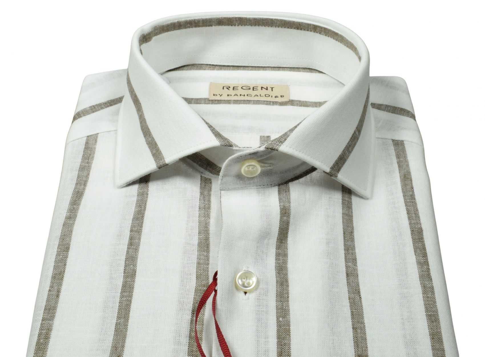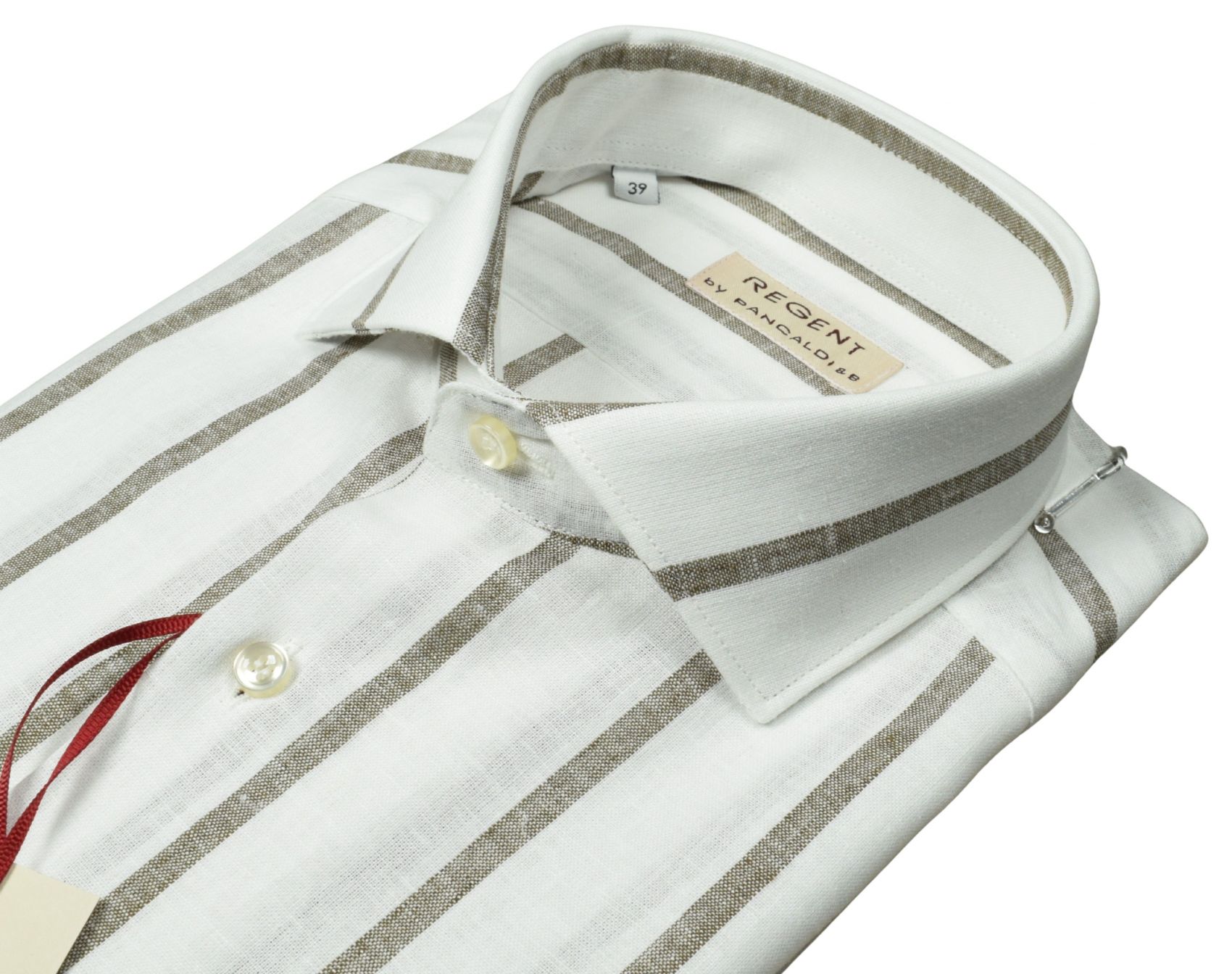 • Pancaldi linen cotton slim fit shirt French collar brown stripes