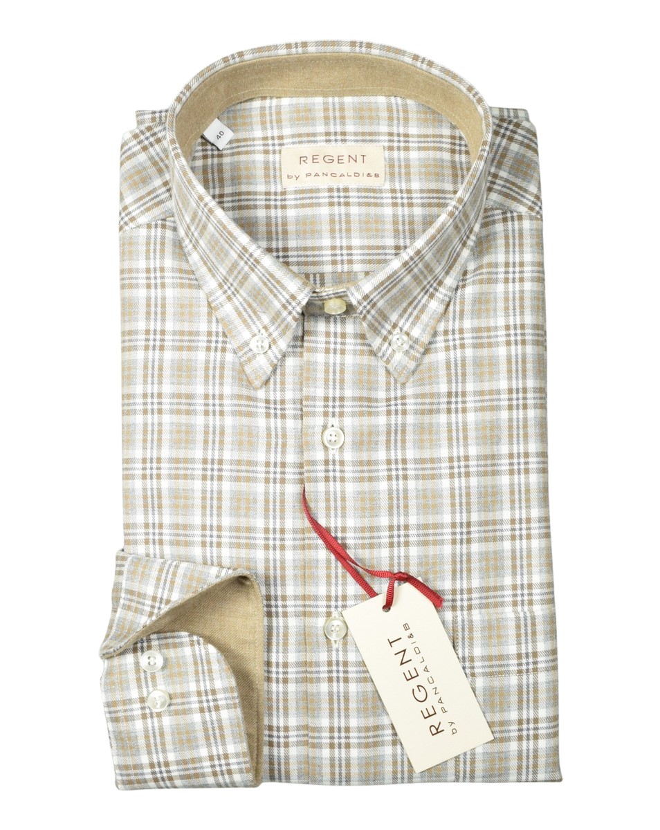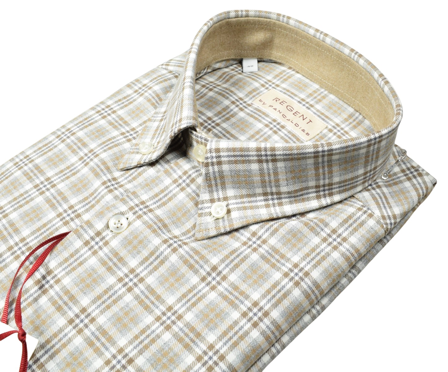 Discover the brushed flannel plaid shirt, elegant in beige and gray tones, perfect for any occasion, from the office to casual outings. Made with high-quality cotton, it offers a comfortable fit and long-lasting durability.