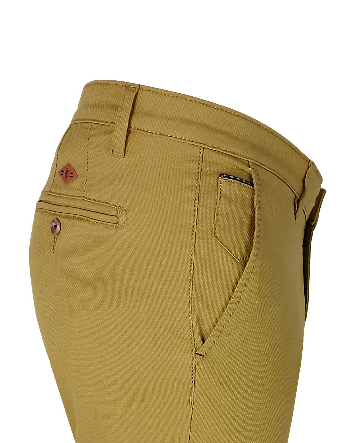 Refined details such as the buttoned back pocket, the logo patch on the back, tone‑on‑tone stitching and belt loops complete a garment ideal for both leisure and office wear.