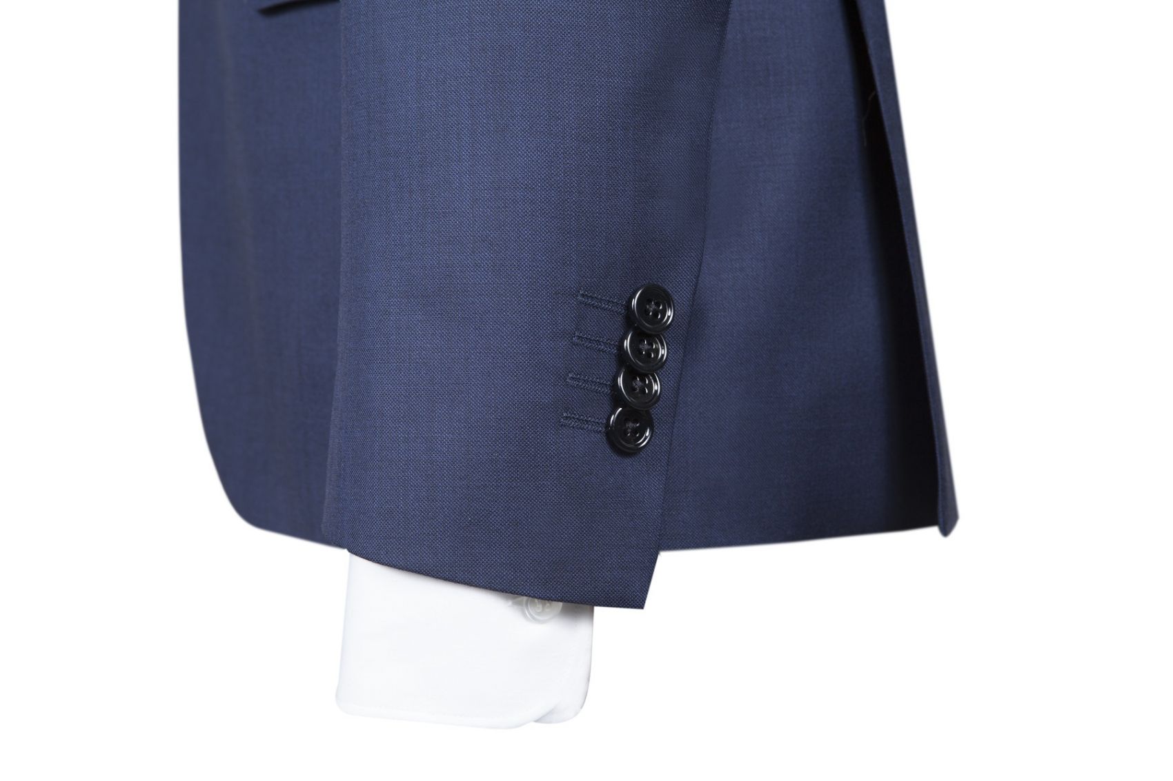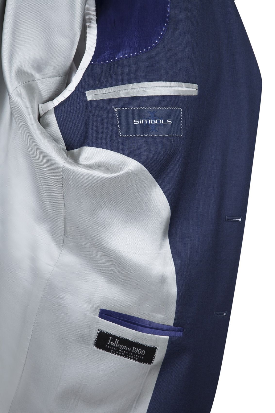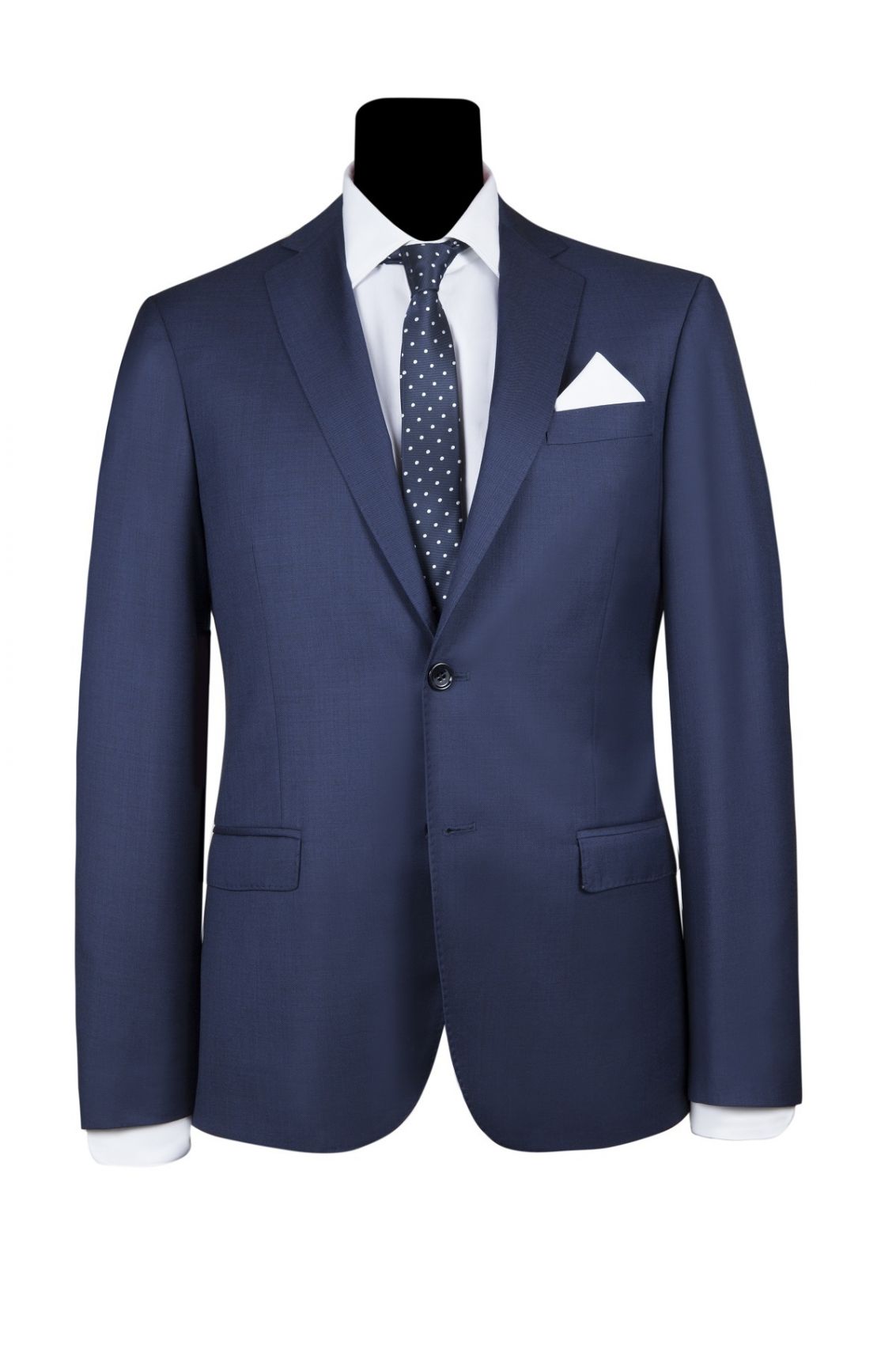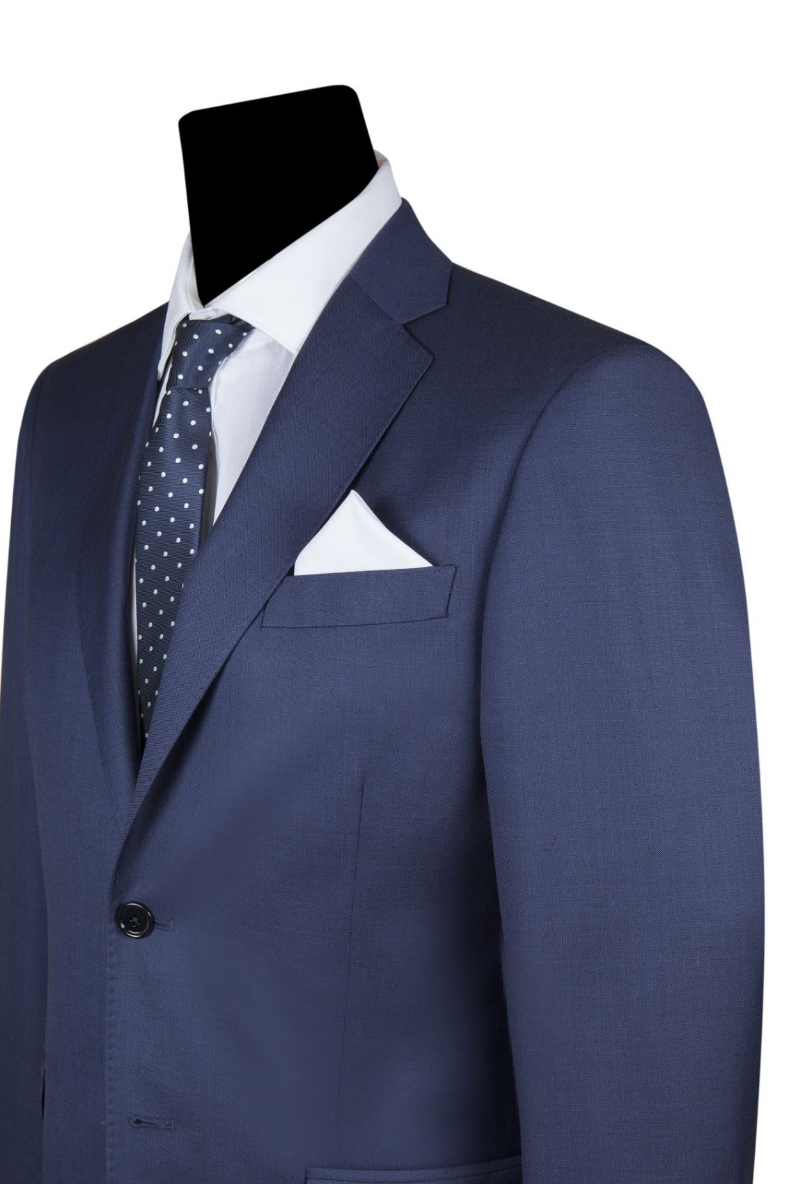 - Jacket: 2 buttons, classic lapel, double back vent Trousers: slant pockets, 18 cm hem