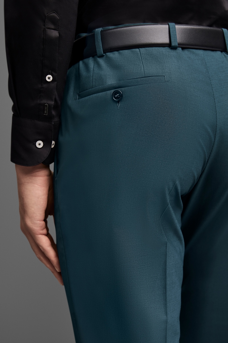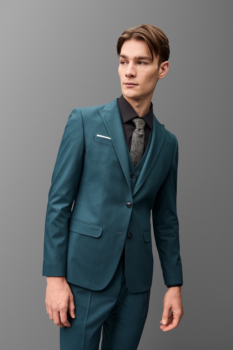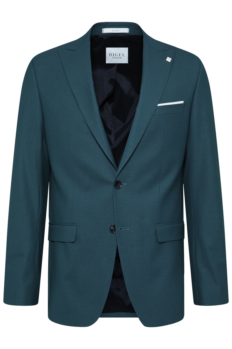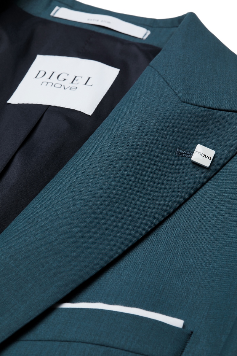 Slim fit digel suit in petrol green wool blend with bi-stretch