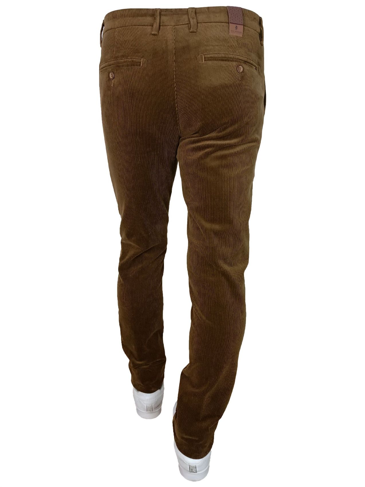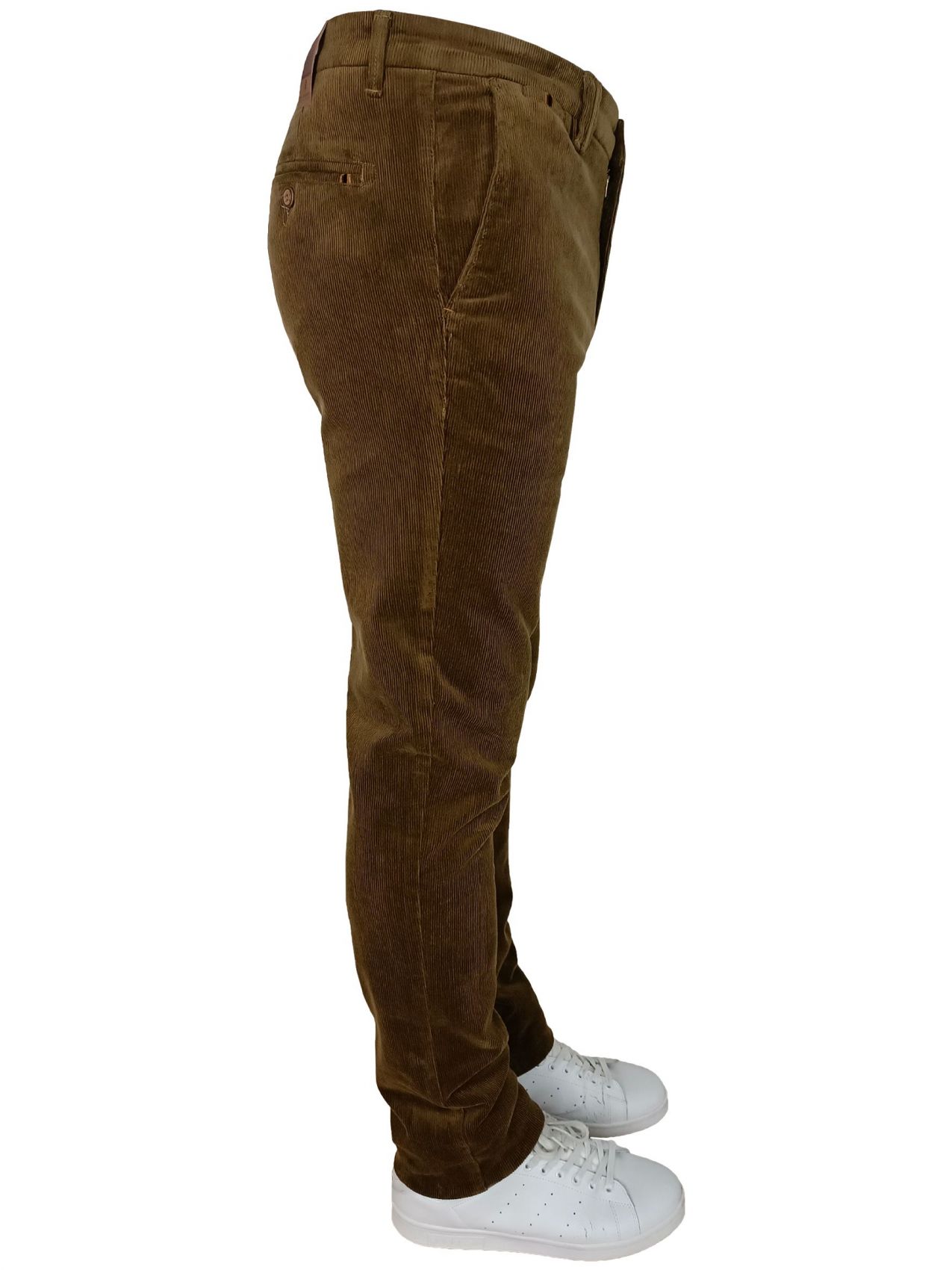 Chino trousers made of stretch velvet fabric with 1500 stripes.